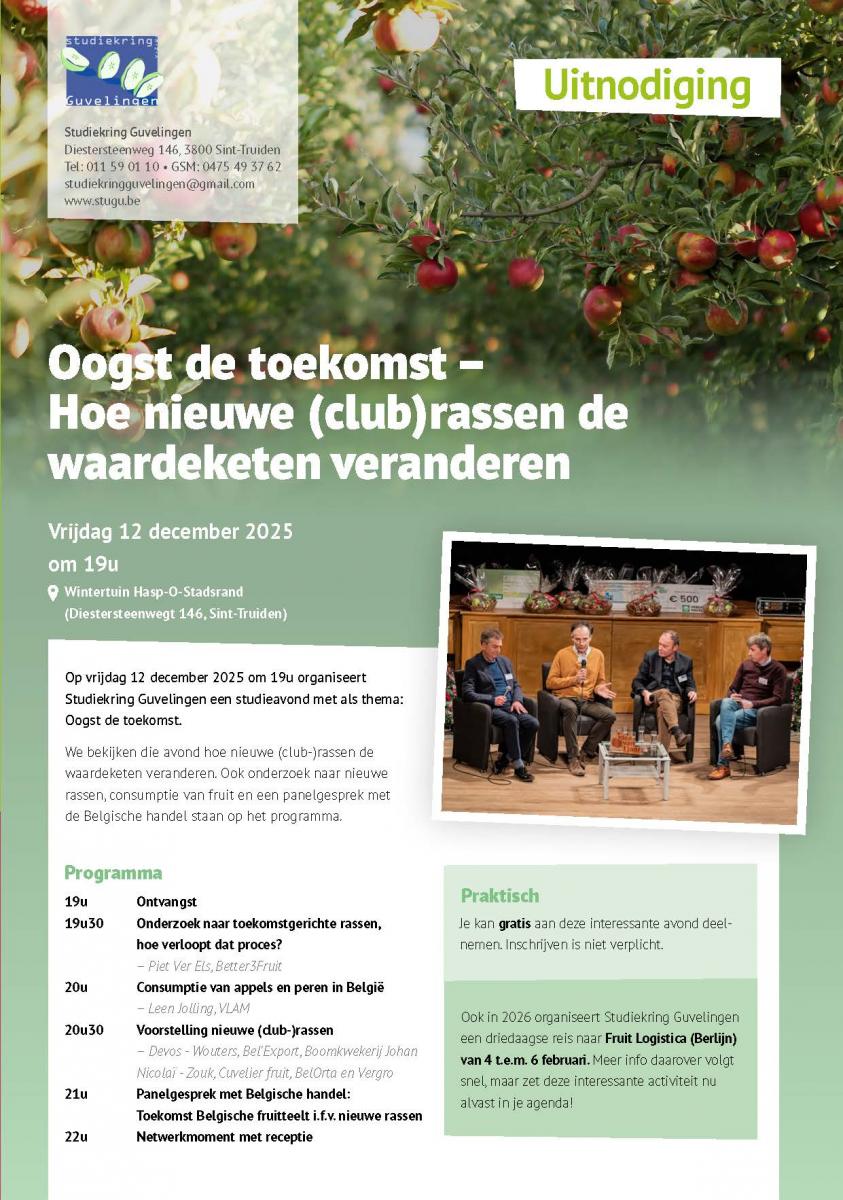 Hoe veranderen de nieuwe (club-)rassen de waardeketen? Ook onderzoek naar nieuwe rassen, consumptie van fruit en een panelgesprek met de Belgische handel komen aan bod.