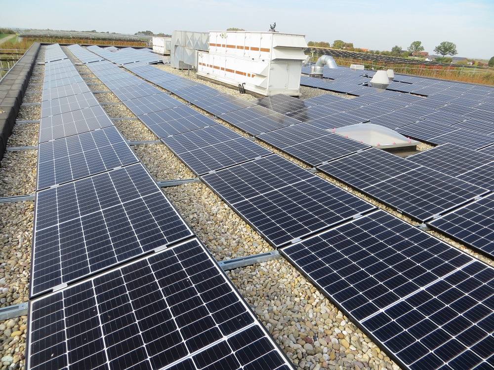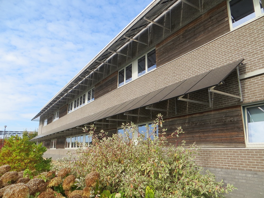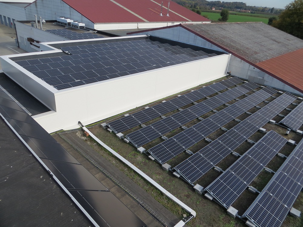 De keuze viel op hoogrendement zonnepanelen, die geplaatst worden op de daken van het hoofdgebouw en de inkom alsook op het dak van een van de loodsen. Daarnaast werden aan de zuidelijk gerichte voorgevel van het hoofdgebouw bijkomende panelen bevestigd met een draagsysteem. Die panelen bieden nu eveneens bescherming tegen direct zonlicht in de aanpalende burelen en vervangen zo de verouderde zonnewering.