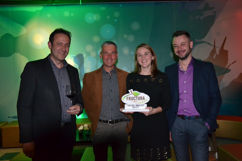 pcfruit won de Fructura Award voor ‘innovatiefste standhouder’. Het Proefcentrum Fruitteelt pakte tijdens de Fructura-beurs eind november in de Ethias Arena in Hasselt uit met 2 nieuwigheden. Een eerste blikvanger was de app EVATM (Eindelijk Vereenvoudigde Administratie) als hulp voor het bedrijfsmanagement van elke professionele fruitteler. Ten tweede toonde pcfruit er de verticale meetwand voor verdeling van spuitvloeistoffen in de boomgaard.