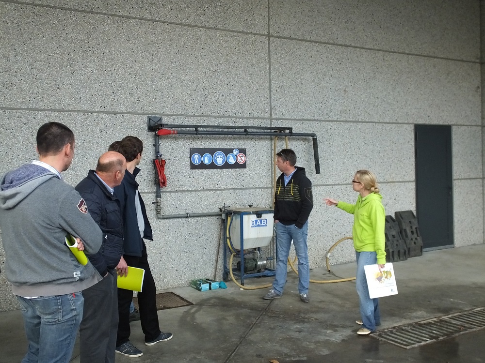 Ellen Pauwelyn (Inagro) begeleidde de workshop puntvervuiling. De telers verkregen er meer informatie over het praktisch inrichten van vul -en spoelplaatsen, het vullen en spoelen van het spuittoestel en het zuiveren van het restwater van het spuittoestel.