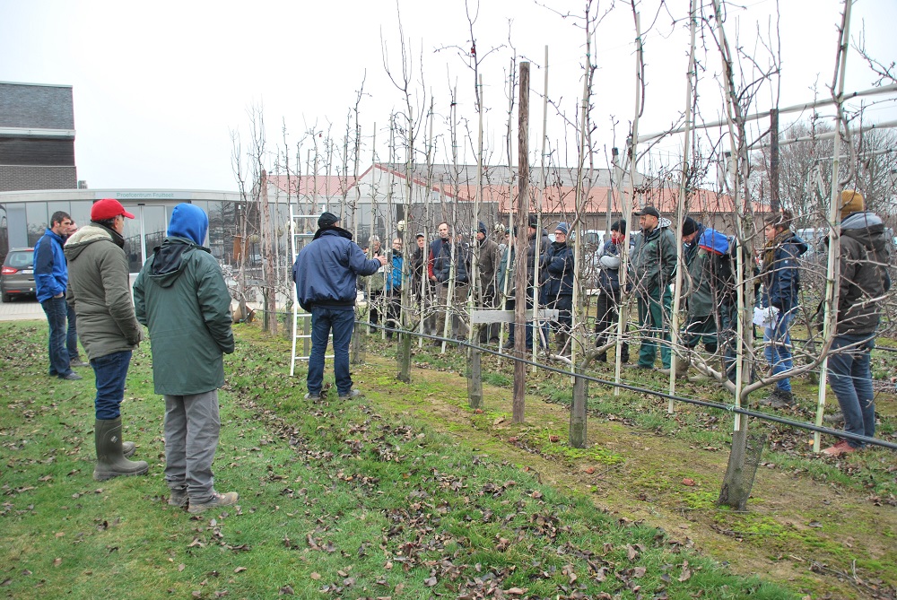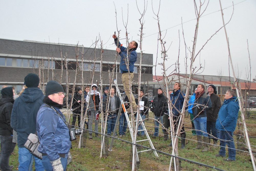 Een 100 fruittelers, studenten, leerkrachten... namen deel aan de snoeinamiddag die pcfruit organiseerde op 1 december 2016.